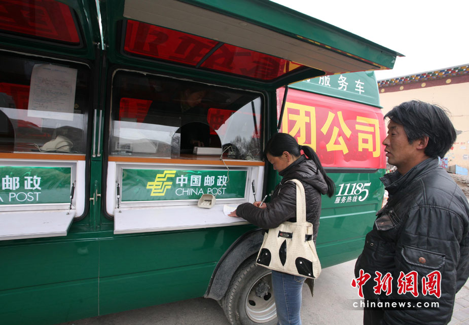 4月20日,寧夏郵政抗震救災(zāi)突擊隊六輛全電子移動郵政業(yè)務(wù)車開進(jìn)玉樹地震災(zāi)區(qū),開始受理市民信函、金融等業(yè)務(wù)辦理,目前玉樹城內(nèi)已有多家銀行機(jī)構(gòu)和商業(yè)網(wǎng)點(diǎn)開始恢復(fù)營業(yè)。圖為玉樹街頭市民正在排隊辦理郵政業(yè)務(wù)。中新社發(fā) 劉忠俊 攝