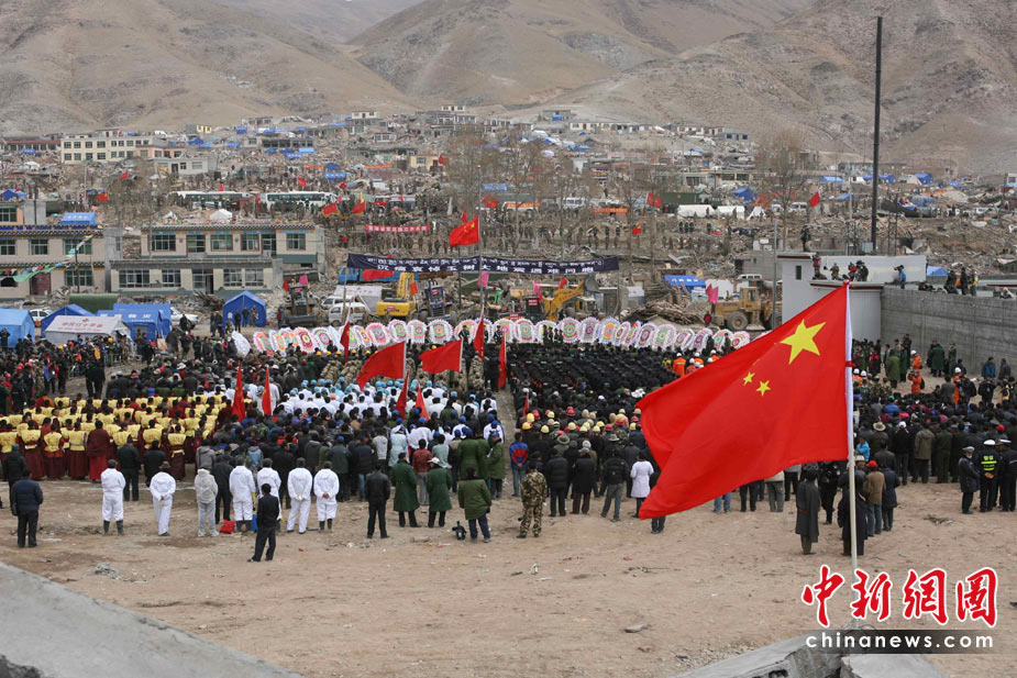 4月21日,為表達(dá)全國(guó)各族人民對(duì)青海玉樹(shù)地震遇難同胞的深切哀悼,中國(guó)國(guó)務(wù)院決定,舉行全國(guó)哀悼活動(dòng)。圖為青海玉樹(shù)當(dāng)?shù)孛癖娫谟駱?shù)縣結(jié)古鎮(zhèn)鎮(zhèn)政府舉行哀悼活動(dòng)。中新社發(fā) 蘇丹 攝
