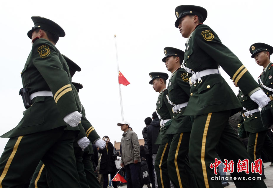 4月21日,為表達(dá)全國(guó)各族人民對(duì)青海玉樹地震遇難同胞的深切哀悼,中國(guó)國(guó)務(wù)院決定,舉行全國(guó)哀悼活動(dòng),全國(guó)和駐外使領(lǐng)館下半旗志哀,停止公共娛樂(lè)活動(dòng)。中新社發(fā) 杜洋 攝