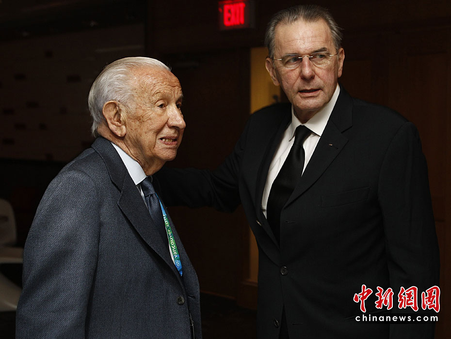 圖為2010年2月12日,薩馬蘭奇與羅格在加拿大溫哥華冬奧會上會面。