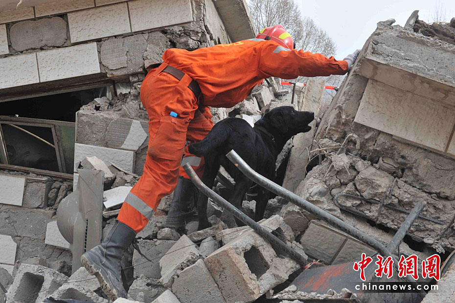 名貴的黑貝犬是中國國家救援隊(duì)趕赴青海玉樹地震災(zāi)區(qū)6只搜救犬隊(duì)成員之一,身價近百萬元人民幣。4月21日清晨八時許,它在救援隊(duì)員的帶領(lǐng)下,到玉樹地震災(zāi)區(qū)中心商業(yè)街廢墟里,四處奔波,盡職盡力尋找生命跡象。10時后,他和救援隊(duì)員都出現(xiàn)高原反應(yīng),暫時休整,準(zhǔn)備再戰(zhàn)。賈國榮 攝
