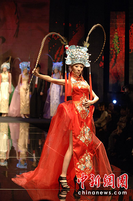 4月20日晚,首屆海西國際時(shí)裝周在福建石獅閉幕,本屆時(shí)裝周吸引了來自海峽兩岸的紡織服裝界企業(yè)家和知名服裝設(shè)計(jì)師。期間舉辦了12場(chǎng)時(shí)裝品牌和設(shè)計(jì)師作品動(dòng)態(tài)發(fā)布會(huì)。圖為模特展示古今潮流結(jié)合的服裝。王東明 攝