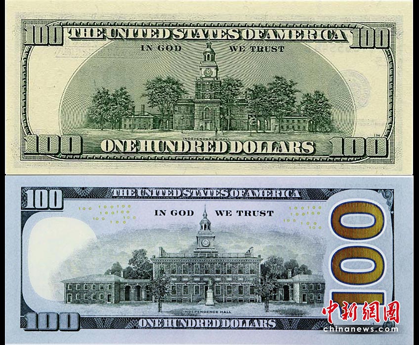 4月21日,美國財政部和美聯(lián)儲共同發(fā)布新版100美元面值的紙幣票樣。此次發(fā)行新版百元美鈔旨在防范假鈔,同時,老版美元仍將繼續(xù)流通。圖片來源:中國新聞網(wǎng)