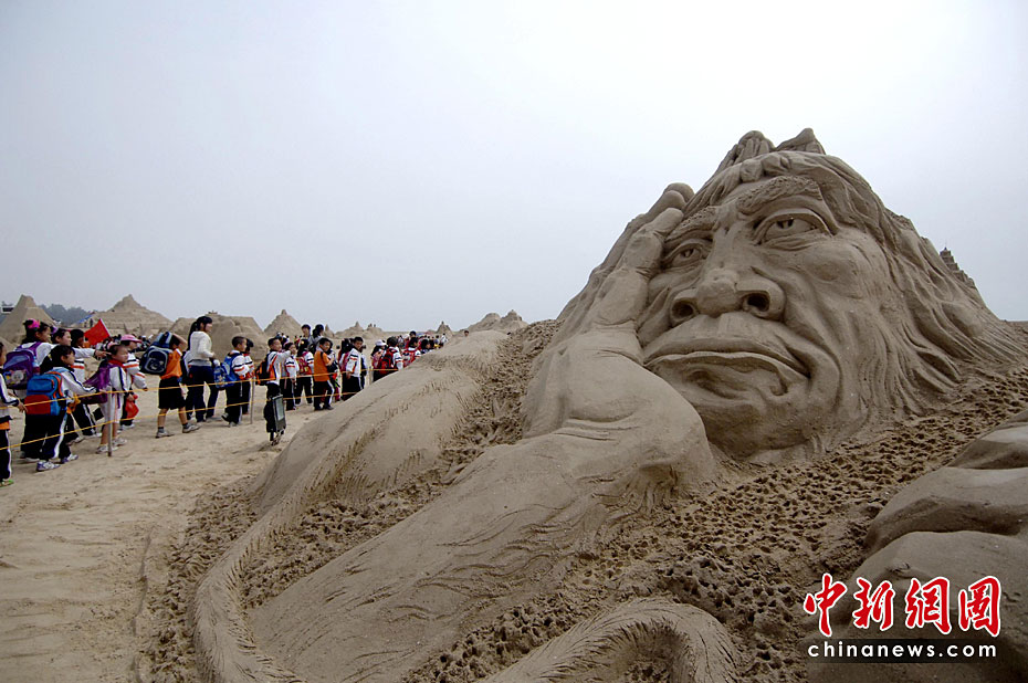 第三屆廈門(mén)觀音山沙雕文化公園于4月22日在廈門(mén)觀音山黃金沙灘投入試運(yùn)營(yíng)。本屆沙雕文化公園將以“暢游歷史”及“世博文化”為主題,共匯集70余座沙雕作品,規(guī)模繼續(xù)在亞洲稱雄。本次2010年觀音山沙雕文化公園將分為六大區(qū)域,分別是歷史主題區(qū)、世博專區(qū)、海洋文化區(qū)、競(jìng)賽區(qū)、DIY體驗(yàn)區(qū)和休閑配套區(qū)。尤以世博專區(qū)和歷史主題區(qū)為展示重點(diǎn)。王東明 攝