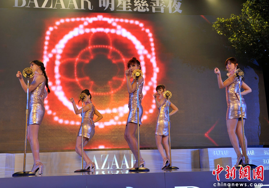 4月25日,由《時尚芭莎》雜志社主辦的第8屆“BAZAAR明星慈善夜”活動在上海舉行,圖為韓國少女組合Wonder Girl參加晚宴并現(xiàn)場演唱漢語版《nobody》。 中新網(wǎng)記者 金碩 攝