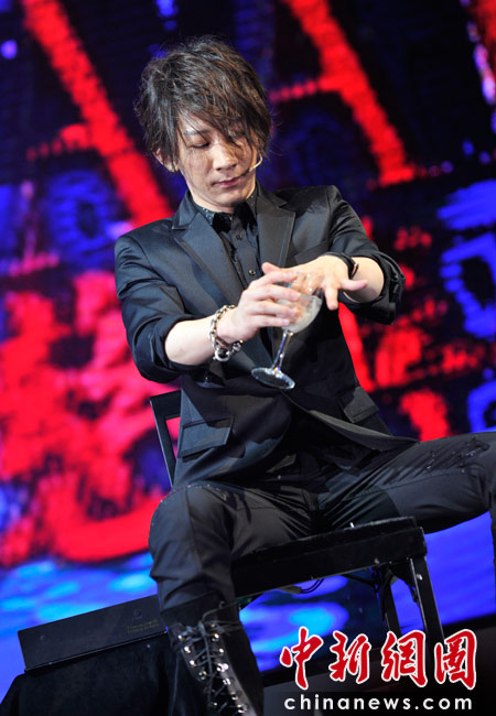 4月25日,由《時(shí)尚芭莎》雜志社主辦的第8屆“BAZAAR明星慈善夜”活動(dòng)在上海舉行,圖為劉謙為現(xiàn)場(chǎng)嘉賓表演精彩炫目的魔術(shù)。 中新網(wǎng)記者 金碩 攝
