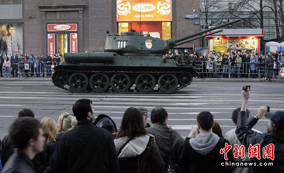 此次紅場閱兵包括兩部分內(nèi)容:歷史部分和現(xiàn)代部分。歷史部分由身穿衛(wèi)國戰(zhàn)爭時(shí)期軍服的士兵在鵝卵石道上進(jìn)行,同時(shí)還會(huì)有9輛T-34坦克和8輛SU-100自行火炮,F(xiàn)代部分由13輛老虎裝甲車、BTR-80裝甲車、BMP-3步兵戰(zhàn)車、T-90A坦克和S-400防空系統(tǒng)等。圖片來源:中國新聞網(wǎng)