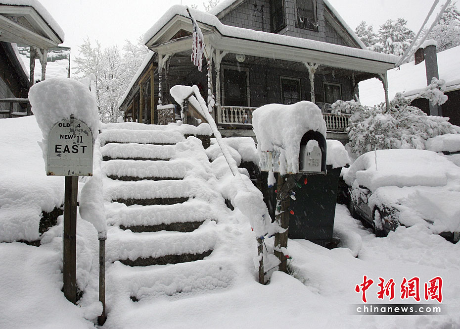 當(dāng)?shù)貢r(shí)間4月28日,美國(guó)佛蒙特州部分地區(qū)遭大雪襲擊。這場(chǎng)大雪給人們的出行帶來(lái)不便。圖片來(lái)源:中國(guó)新聞網(wǎng)