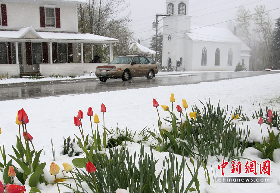當?shù)貢r間4月28日,美國佛蒙特州部分地區(qū)遭大雪襲擊。這場大雪給人們的出行帶來不便。圖片來源:中國新聞網(wǎng)