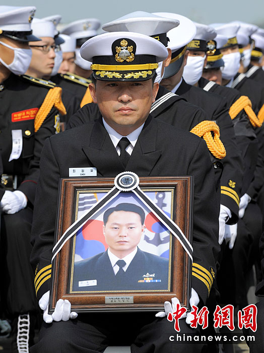 4月29日上午,韓國“天安”艦遇難官兵遺體告別儀式在平澤海軍第二艦隊司令部安保公園舉行。韓國總統(tǒng)李明博攜夫人參加告別儀式。圖片來源:中國新聞網(wǎng)