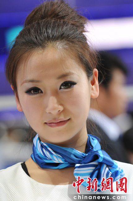 “第十一屆北京國際車展”是名車新品搶先亮相的舞臺,也成了車模們爭奇斗艷的場所,參觀者在車展中可以享受兩道視覺大餐。中新網(wǎng)記者 金碩 攝
