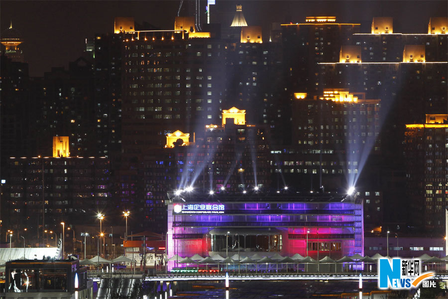 4月30日,中國(guó)2010年上海世博會(huì)開(kāi)幕。圖為上海企業(yè)聯(lián)合館亮燈。裴鑫攝