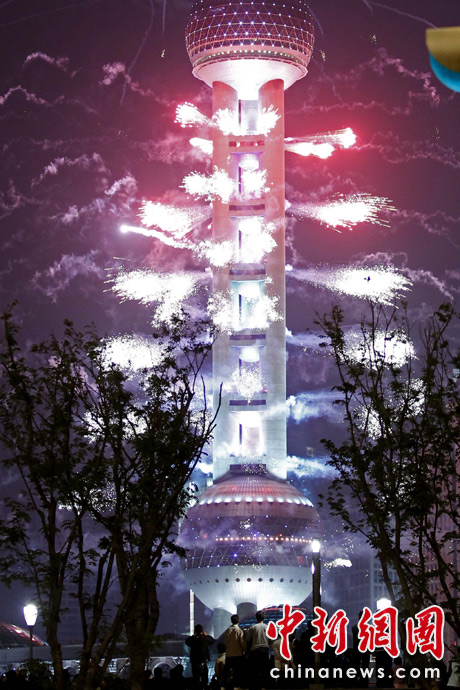 4月30日,上海世博會(huì)開(kāi)幕,黃浦江畔火樹(shù)銀花姹紫嫣紅,這座夢(mèng)想成真城市的千萬(wàn)居民,在這個(gè)注定難忘的夜晚盡情燃燒和釋放著自己的激情。中新社發(fā) 盛佳鵬 攝