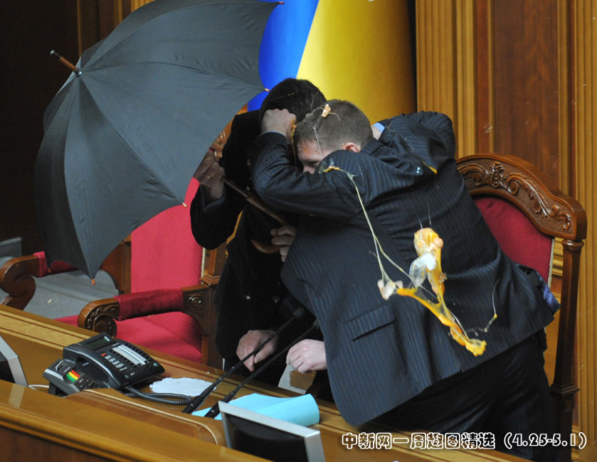 4月27日,基輔,烏克蘭議會就俄羅斯黑海艦隊駐扎問題進(jìn)行討論時出現(xiàn)混亂,數(shù)千人在議會外示威,會場內(nèi)有人投擲煙霧彈和雞蛋,大廳內(nèi)煙霧彌漫,場面一度混亂。圖片來源:中國新聞網(wǎng)>>點(diǎn)擊觀看詳細(xì)內(nèi)容