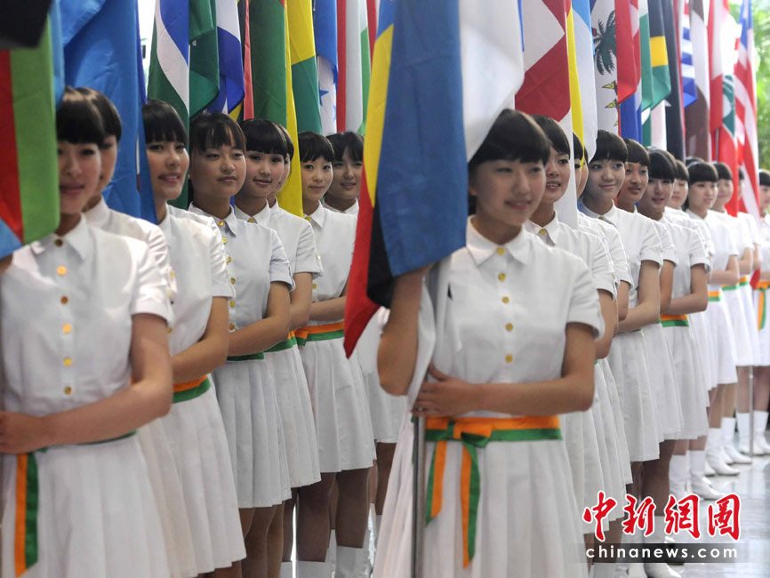 5月1日,2010年上海世博會正式開園,英姿颯爽的女子旗手們參加清晨的儀式。中新社記者 賈國榮攝