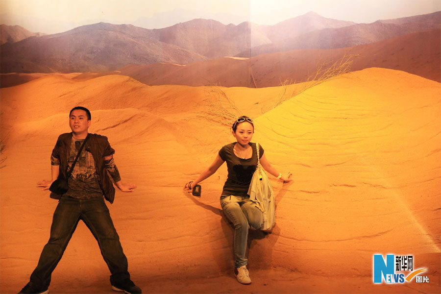 5月1日,上海世博會正式開園迎客,首批游客入園參觀。游客在阿曼館內拍照。李明放攝