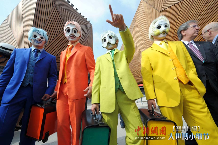 5月1日,上海世博會(huì)正式開園,當(dāng)日有20萬人次的游客參觀了世博園。世博首日,許許多多的小細(xì)節(jié)都帶給人一種全新的體驗(yàn)。圖為加拿大演藝人員幽默登場(chǎng)。中新社發(fā) 陳文 攝