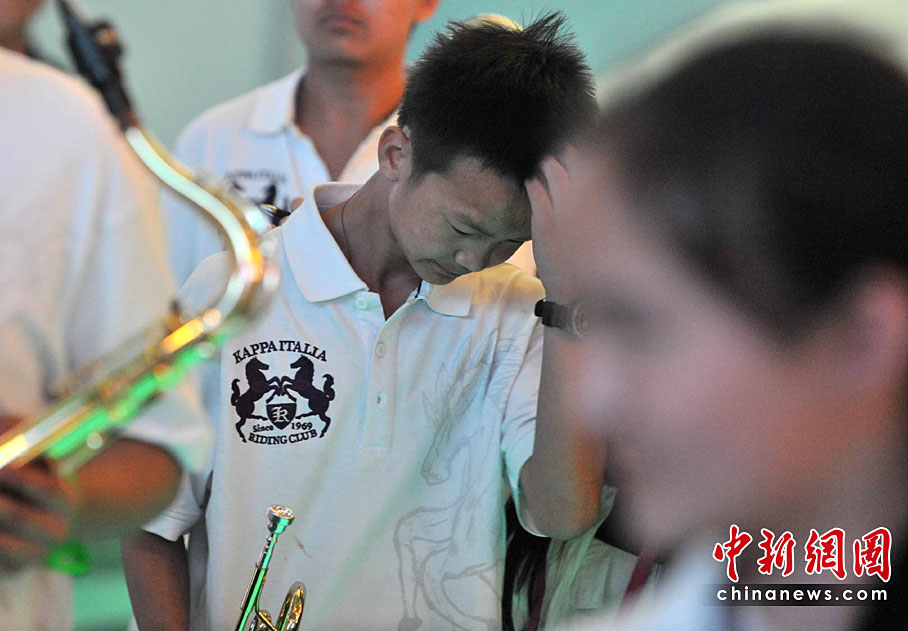 5月2日清晨,來自玉樹地震災(zāi)區(qū)結(jié)古鎮(zhèn)的藏族小樂手巴東珠,含著姐姐在地震中不幸遇難的悲痛心情,與小白楊中學(xué)生管弦樂團(tuán)來到上海世博會(huì),為中國(guó)青海館觀眾獻(xiàn)上一曲《在那遙遠(yuǎn)的地方》。他悲歡交融的情懷和演藝,感動(dòng)全場(chǎng)。巴東珠之前還是青海省人民醫(yī)院為地震傷員做藏語(yǔ)翻譯的志愿者。中新社記者 賈國(guó)榮 攝