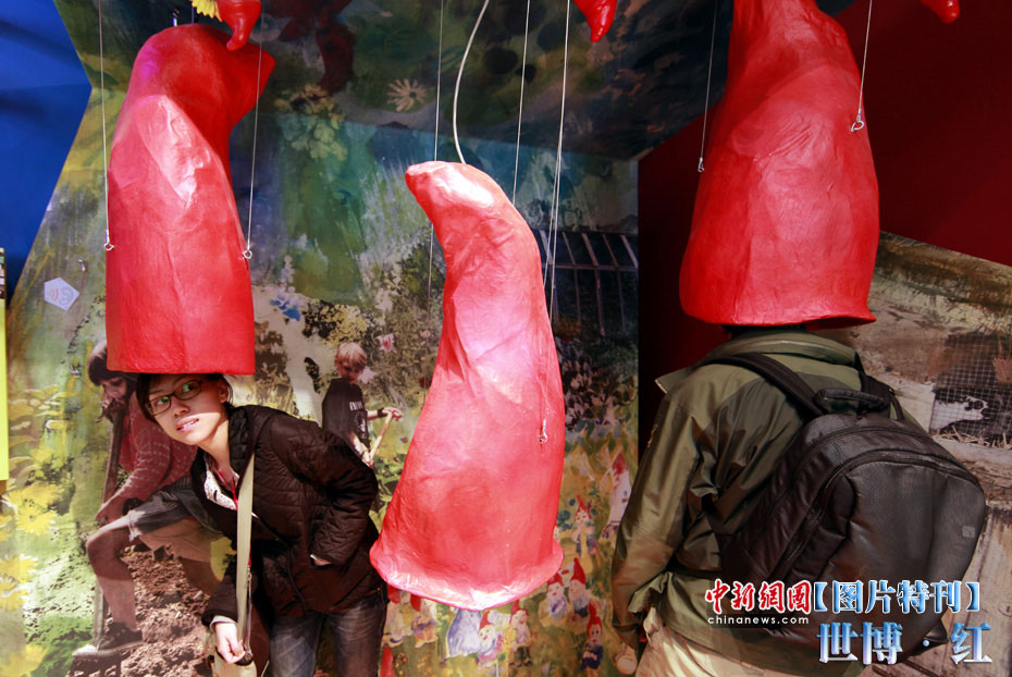 紅色象征著熱量與活力,紅色也象征著興奮與激情,在世博園區(qū)內(nèi)游覽,總會有一抹濃艷的紅色闖入到記者鏡頭之中,讓世博變得更加火辣。圖為德國館內(nèi)的互動小游戲。中新社記者 盛佳鵬 攝