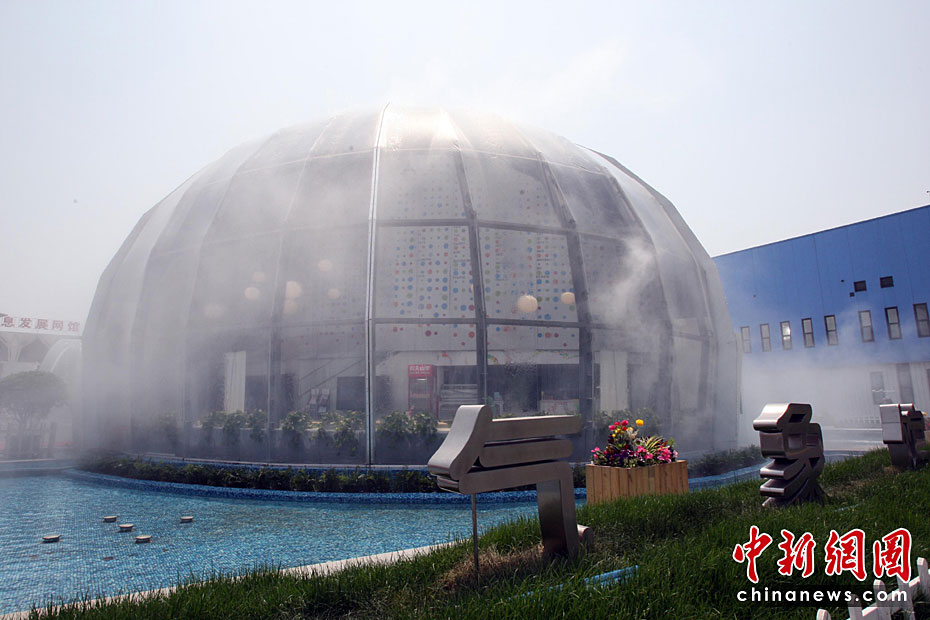 5月2日,上海世博會(huì)是第一個(gè)正式提出“低碳世博”理念的世博會(huì),圍繞著這樣的理念,上海世博園區(qū)內(nèi)的低碳元素比比皆是。圖為世界氣象館墻體外層如人的皮膚,防風(fēng)、防雨、透氣。中新社發(fā) 湯彥俊 攝