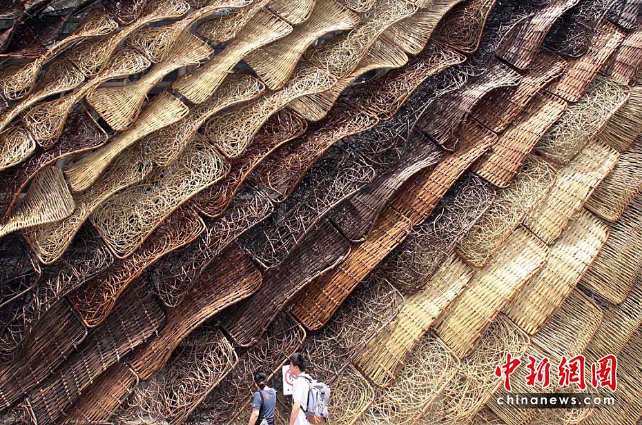 5月2日,上海世博會是第一個正式提出“低碳世博”理念的世博會,圍繞著這樣的理念,上海世博園區(qū)內(nèi)的低碳元素比比皆是。圖為西班牙館外墻是用藤條材料組成,既環(huán)保又傳統(tǒng)。中新社發(fā) 湯彥俊 攝