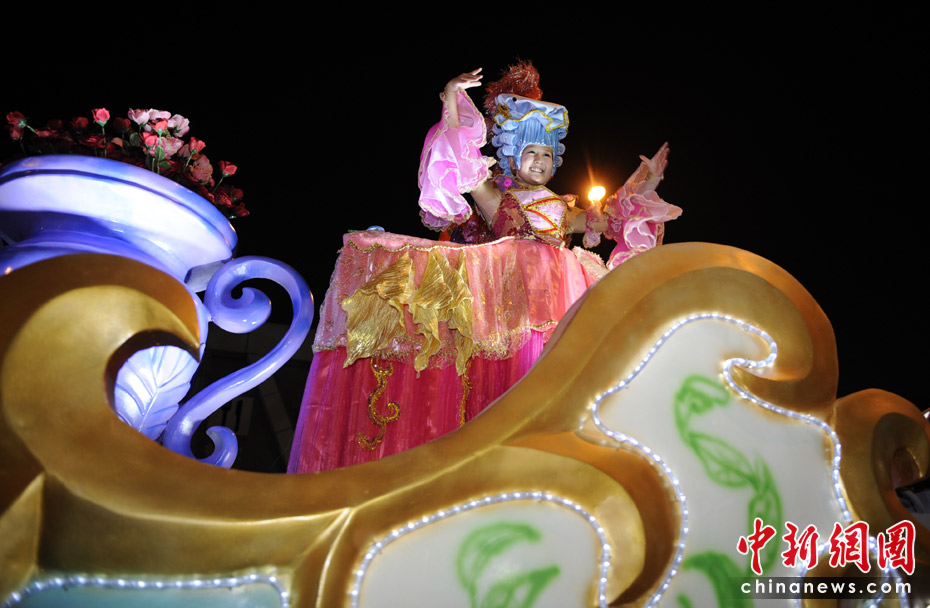 5月2日晚,由一輛輛充滿異域風(fēng)情的花車(chē)和身著盛裝的表演者組成的“歡樂(lè)盛裝大巡游”在世博園區(qū)舉行。中新網(wǎng)記者 王紅綱 攝