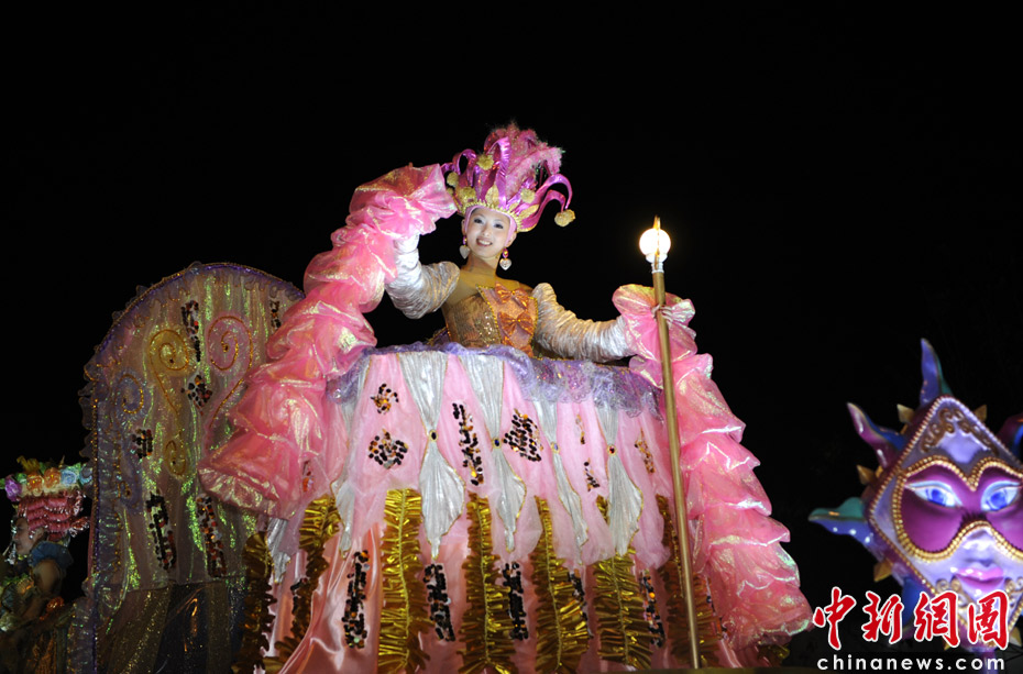 5月2日晚,由一輛輛充滿異域風(fēng)情的花車和身著盛裝的表演者組成的“歡樂盛裝大巡游”在世博園區(qū)舉行。中新網(wǎng)記者 王紅綱 攝