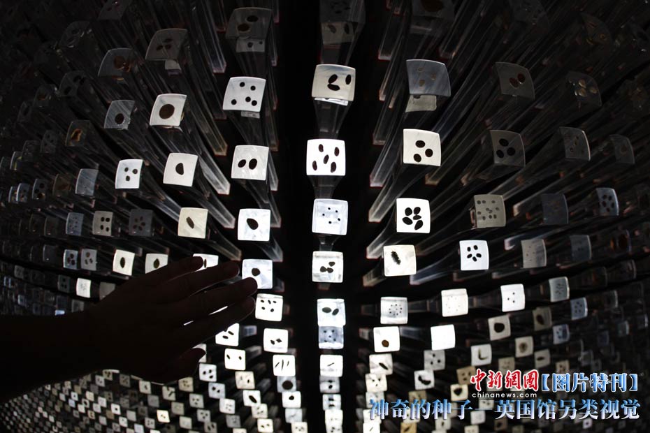 上海世博園開(kāi)園才數(shù)日,自號(hào)“種子圣殿”的英國(guó)館已成人氣最旺場(chǎng)館之一。該館由6萬(wàn)根亞克力桿巧妙構(gòu)成,隨風(fēng)搖動(dòng),頗為新奇。其每根桿子里都含有植物種子。中新社記者 盛佳鵬 攝