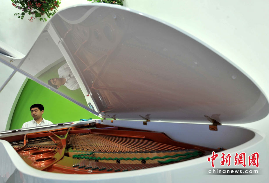 5月4日是上海世博會(huì)第四天,盲人鋼琴家孫巖在生命陽光館專設(shè)區(qū)域?yàn)楸姸鄽埣踩撕陀^眾演奏,導(dǎo)盲犬靜臥在他的腳邊,這是世博會(huì)歷史上第一次為殘疾人設(shè)館。孫巖2005年獲得“日本橫濱第一屆國際殘疾人鋼琴比賽”金獎(jiǎng),他是中央音樂學(xué)院有史以來第一位盲人大學(xué)生和研究生。他的傾情演奏感動(dòng)全場(chǎng),掌聲連連。中新社發(fā) 賈國榮 攝