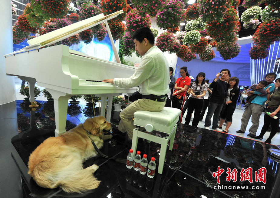 5月4日是上海世博會(huì)第四天,盲人鋼琴家孫巖在生命陽光館專設(shè)區(qū)域?yàn)楸姸鄽埣踩撕陀^眾演奏,導(dǎo)盲犬靜臥在他的腳邊,這是世博會(huì)歷史上第一次為殘疾人設(shè)館。孫巖2005年獲得“日本橫濱第一屆國(guó)際殘疾人鋼琴比賽”金獎(jiǎng),他是中央音樂學(xué)院有史以來第一位盲人大學(xué)生和研究生。他的傾情演奏感動(dòng)全場(chǎng),掌聲連連。中新社發(fā) 賈國(guó)榮 攝