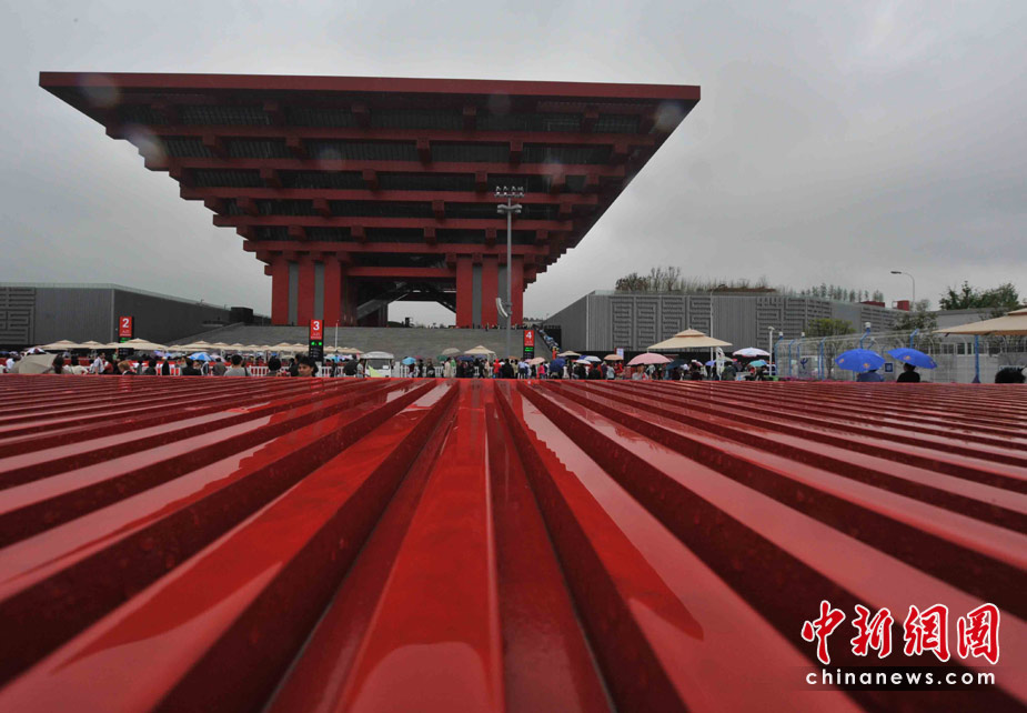 5月5日,上海世博會(huì)迎來(lái)開(kāi)園五天來(lái)首個(gè)春雨天,雨中的中國(guó)館依然是游客參觀的最愛(ài)。中新社記者 賈國(guó)榮攝