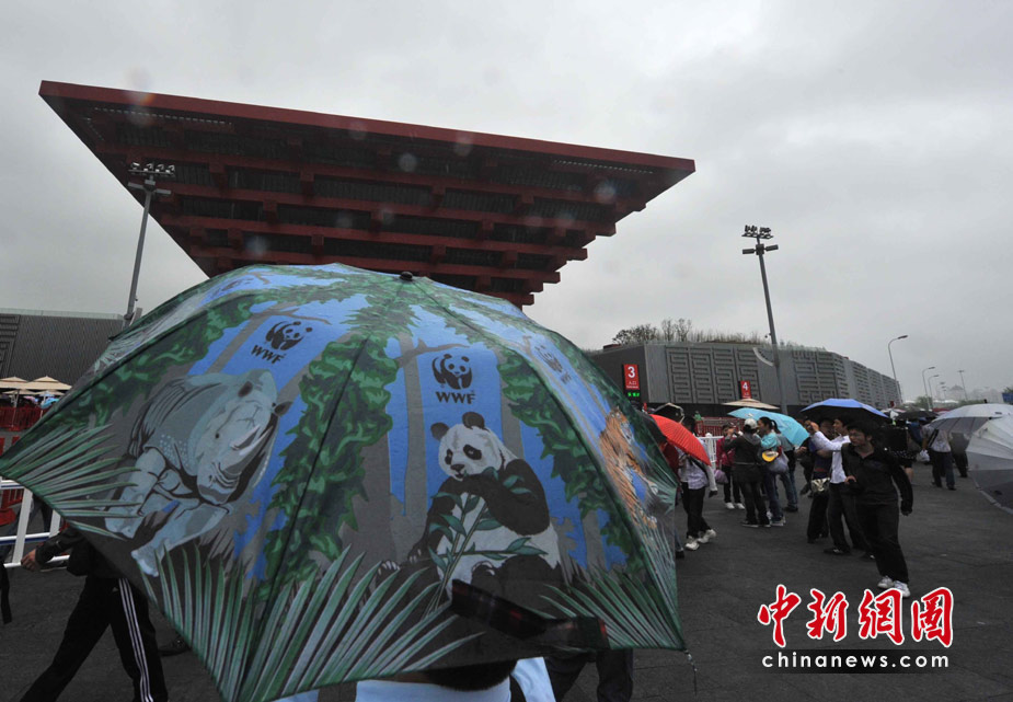 5月5日,上海世博會(huì)迎來(lái)開(kāi)園五天來(lái)首個(gè)春雨天,雨中的中國(guó)館依然是游客參觀的最?lèi)?ài)。中新社記者 賈國(guó)榮攝