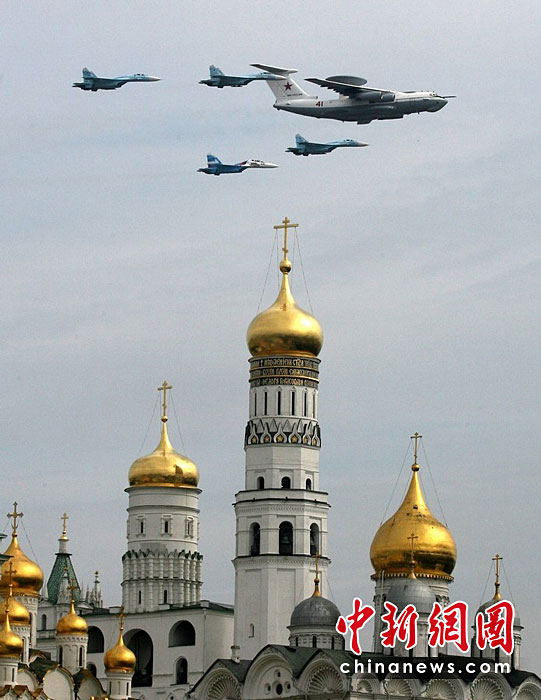 當(dāng)?shù)貢r(shí)間5月4日,在俄羅斯首都莫斯科,參加彩排的戰(zhàn)機(jī)編隊(duì)飛過紅場上空。俄羅斯將于5月9日隆重紀(jì)念衛(wèi)國戰(zhàn)爭勝利65周年。圖片來源:中國新聞網(wǎng)