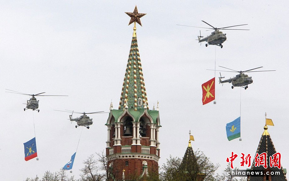 當地時間5月4日,在俄羅斯首都莫斯科,參加彩排的戰(zhàn)機編隊飛過紅場上空。俄羅斯將于5月9日隆重紀念衛(wèi)國戰(zhàn)爭勝利65周年。圖片來源:中國新聞網