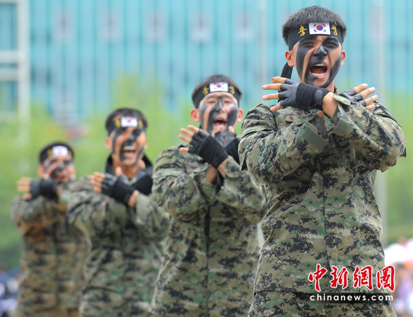 5月5日,韓國兒童節(jié),韓國突擊隊(duì)員在國家戰(zhàn)爭博物館為孩子們表演。