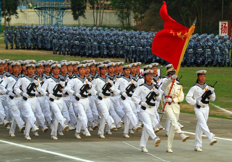 海軍陸戰(zhàn)隊儀仗隊通過主席臺。圖片來源:新華網(wǎng) 查春明攝