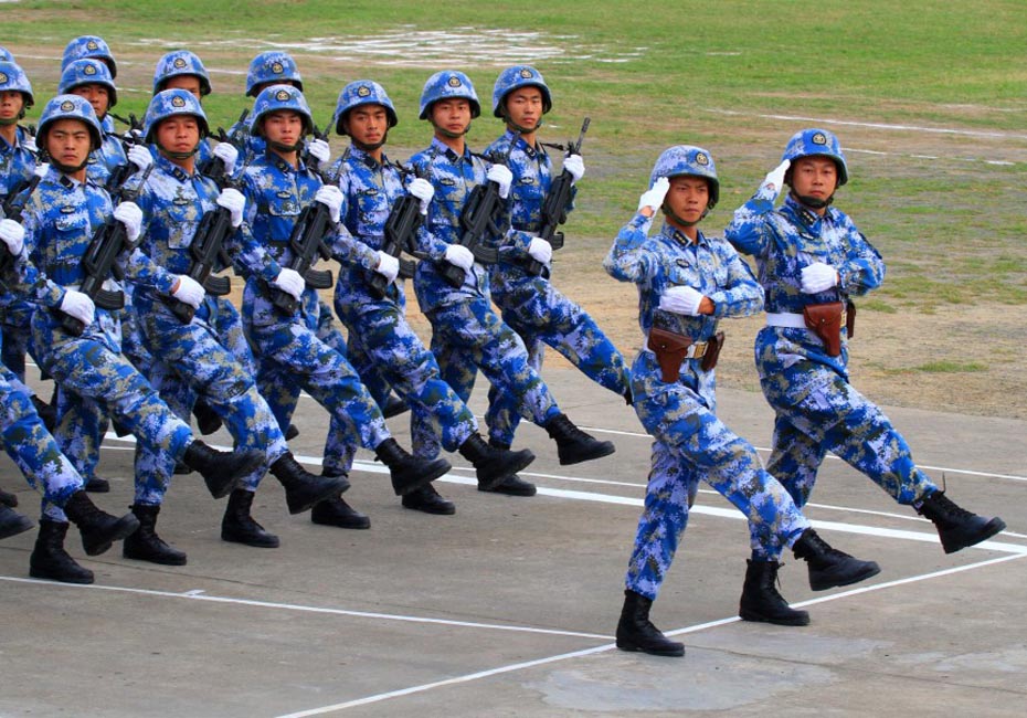 5月5日,海軍陸戰(zhàn)隊方隊通過主席臺接受檢閱。圖片來源:新華網(wǎng) 查春明攝