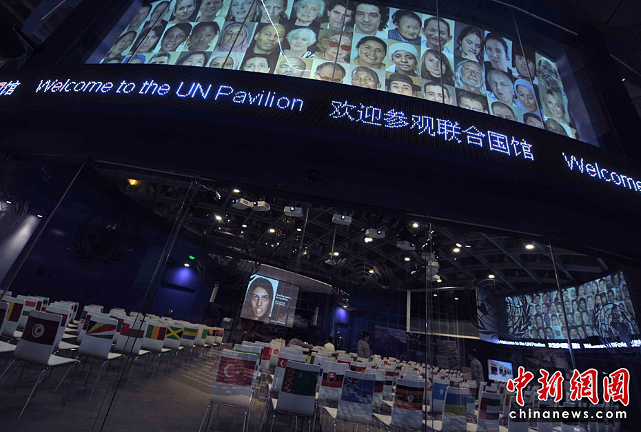 一所藍(lán)色的簡(jiǎn)樸平房,在5月開園的上海世博會(huì)大道邊上,極不顯眼。但是,聯(lián)合國(guó)聯(lián)合館的鮮明會(huì)標(biāo),特別吸引人。這個(gè)展館集中了世界衛(wèi)生組織、世界銀行和聯(lián)合國(guó)的兒童基金會(huì)、糧農(nóng)組織、教科文組織等22個(gè)機(jī)構(gòu)。圖片來(lái)源:中國(guó)新聞網(wǎng) 賈國(guó)榮 攝