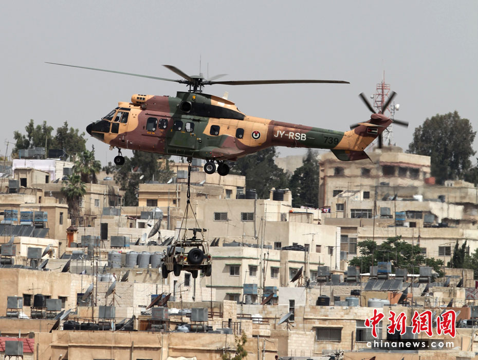 5月11日,約旦特種部隊在安曼空軍基地附近舉行演習(xí),為特種作戰(zhàn)部隊展覽會(SOFEX)開幕式助興。該展覽會為期4天,展覽主題包括國家安全及反恐措施。圖片來源:中國新聞網(wǎng)