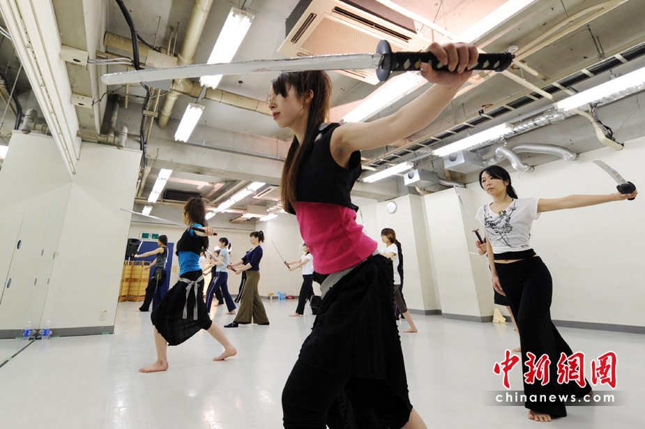 近日,在日本東京,眾多白領(lǐng)女性學起了日本傳統(tǒng)的武士刀,用來減壓。