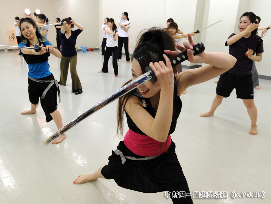 近日,在日本東京,眾多白領(lǐng)女性學(xué)起了日本傳統(tǒng)的武士刀,用來減壓。圖片來源:中國新聞網(wǎng)>>點擊觀看詳細內(nèi)容