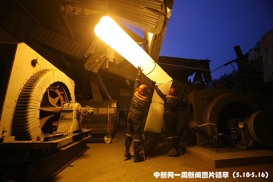 周一(10日),在俄羅斯的梅日杜列琴斯克地區(qū),工作人員在被煤礦爆炸損毀的大樓內安裝照明設施。上周發(fā)生的礦難導致至少32人遇難,58人被困于地下。