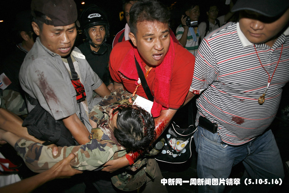 周四(13日),泰國軍方出動裝甲車和狙擊手封鎖紅衫軍示威地點,并截水截電,企圖逼走示威者。紅衫軍營地之后傳出連串槍聲和至少4下爆炸聲,據報造成至少1死20傷,其中支持紅衫軍的陸軍少將卡迪亞頭部中槍昏迷。