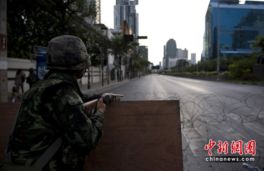泰國(guó)軍隊(duì)和反政府的“紅衫軍”16日繼續(xù)在曼谷的多處地點(diǎn)對(duì)峙,槍聲和爆炸聲不時(shí)響起,曼谷的部分街道已成為“戰(zhàn)區(qū)”。泰國(guó)急救醫(yī)療部門17日表示,泰國(guó)軍警與反政府“紅衫軍”示威民眾3天來(lái)在曼谷街頭爆發(fā)的沖突,死亡人數(shù)已經(jīng)上升到35人。圖片來(lái)源:中國(guó)新聞網(wǎng)