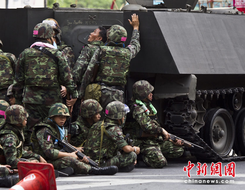 19日清晨,數(shù)百名軍警在武裝車輛的掩護(hù)下向反政府示威者在曼谷的大本營聚集。自上周四紅衫軍與政府在曼谷爆發(fā)沖突以來,已經(jīng)導(dǎo)致39人死亡,數(shù)百人受傷。