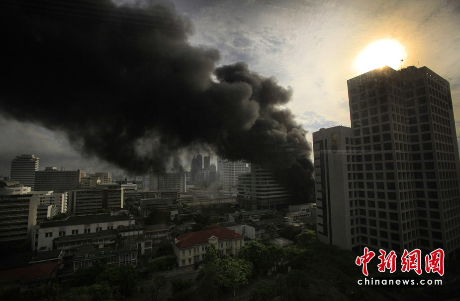 19日,發(fā)起驅(qū)散行動(dòng)的泰國軍方突破了反政府“紅衫軍”示威者在曼谷市中心所筑路障,進(jìn)入其營(yíng)地內(nèi),雙方爆發(fā)槍戰(zhàn)。目擊者稱,已有至少9人受傷,多數(shù)是被槍擊中。 圖為“紅衫軍”成員在曼谷一所醫(yī)院附近集會(huì)并燃燒輪胎。