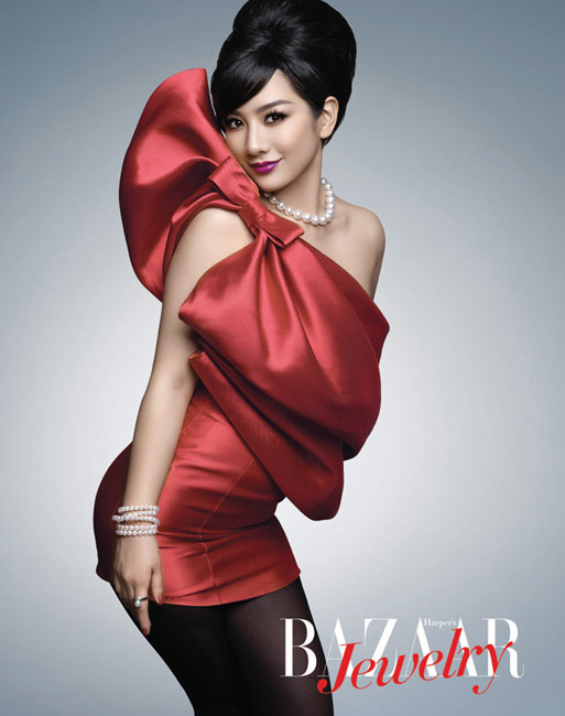 高高蓬起的發(fā)髻,剪裁流暢的禮服,還有頸上那串珍珠,沒有刺眼的光芒,沒有絢麗的色彩,典雅且華麗著。如此妝容會讓你想起老上海的名媛佳麗,或是奧黛麗赫本的回眸一笑,那些雋永的美麗。然而當女主角變成黃奕,優(yōu)雅之外更多的是驚喜。亮紫、淺棕、朱紅,這些原本與經(jīng)典無關(guān)的色彩,在她身上完美的契合,典雅之外的俏皮,精彩之后的永恒,也許,黃奕拍攝的不僅僅是中國頂級的一線雜志《芭莎珠寶》的封面大片,更是她別具一格的生活姿態(tài)。