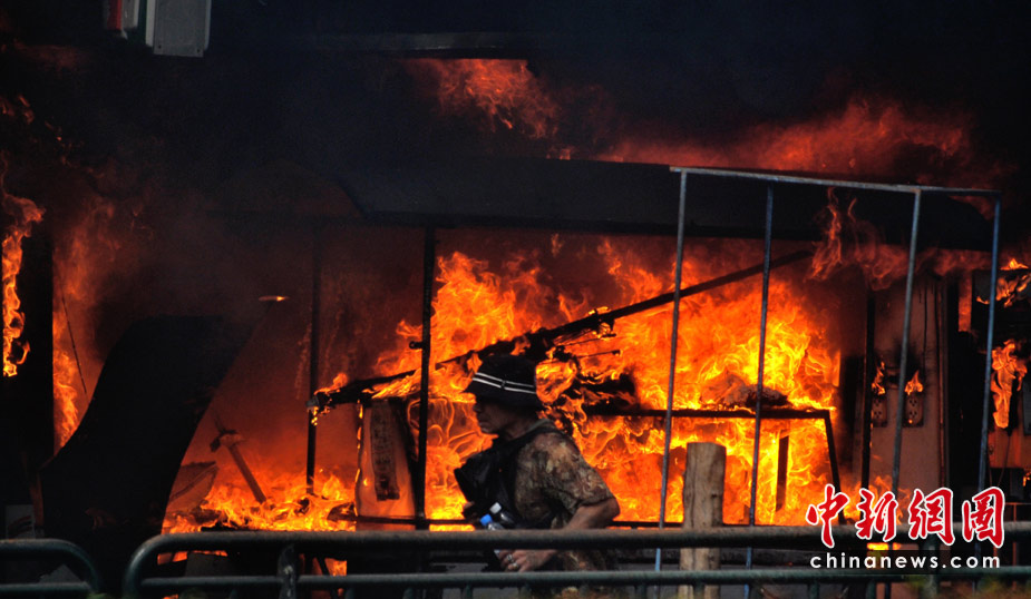 泰國軍方19日清場,希望將陷入內(nèi)戰(zhàn)邊緣的曼谷拯救出來,雖然紅衫軍節(jié)節(jié)敗退,但有激進(jìn)分子未肯罷休,四處放火,電視臺、股票交易所、電力公司、幾間銀行、商場戲院都遭殃,商場和便利店亦成為搶掠目標(biāo)。據(jù)報曼谷有27處地方起火,泰國最大的商場Central World、Siam Square和Siam Paragon三大購物中心被縱火,其中Central World燒通頂,據(jù)報快將倒塌。