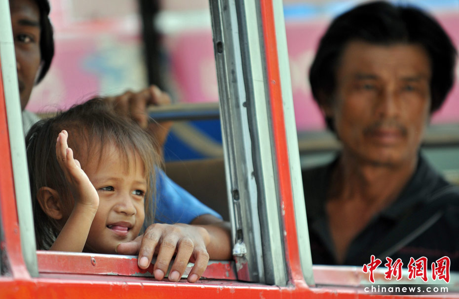 5月20日,數(shù)千名結(jié)束集會(huì)的外地“紅衫軍”示威者在曼谷拉差巴頌地區(qū)接受登記和安全檢查后,乘坐政府安排的車輛返回家鄉(xiāng)。