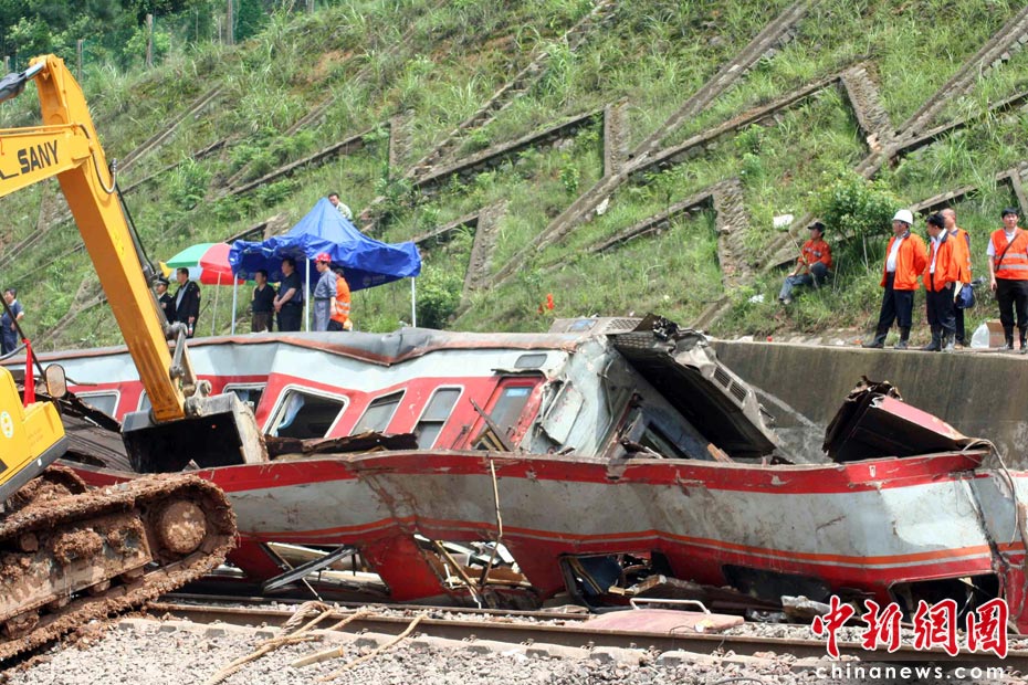 中新網(wǎng)東鄉(xiāng)5月23日電(艾永全 何柳斌 劉占昆)23日下午14時(shí),距離滬昆鐵路客運(yùn)列車脫線事發(fā)已經(jīng)12小時(shí),武警、消防、醫(yī)護(hù)、交警、特警仍在事故現(xiàn)場(chǎng)緊急救援。  艾永全 攝